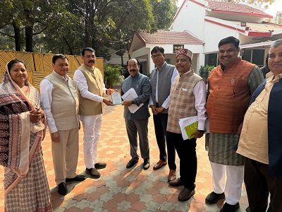इसके पश्चात रायपुर स्थित कुशाभाऊ ठाकरे परिसर, भाजपा प्रदेश कार्यालय में प्रदेश कोषाध्यक्ष श्री राम गर्ग जी, प्रदेश महामंत्री डॉ. नवीन मार्कण्डेय जी, प्रदेश उपाध्यक्ष श्रीमती रंजना साहू जी सहित अन्य वरिष्ठ प्रदेश पदाधिकारियों से भी सौजन्य भेंट कर भूमिपूजन कार्यक्रम के लिए आमंत्रित किया गया। प्रदेश नेतृत्व ने कार्यक्रम में सहभागिता का आश्वासन देते हुए आमंत्रण स्वीकार किया। उल्लेखनीय है कि 2 फरवरी को प्रस्तावित यह भूमिपूजन कार्यक्रम कोरबा में संगठनात्मक सुदृढ़ता, कार्यकर्ताओं के समर्पण और जनसेवा के संकल्प का प्रतीक बनेगा। यह आयोजन भाजपा संगठन के विस्तार और जनहितकारी गतिविधियों को नई दिशा देने वाला ऐतिहासिक क्षण सिद्ध होगा।