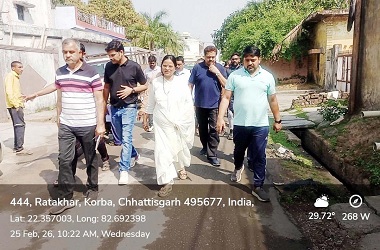 नगर पालिक निगम कोरबा द्वारा वार्ड एवं बस्तियों की सम्पूर्ण रूप से सफाई किये जाने के मद्देनजर आज 25 फरवरी से निगम क्षेत्र में स्वच्छता का महाअभियान प्रारंभ किया गया, अभियान के प्रथम दिन आज वार्ड क्र. 01 रामसागरपारा एवं वार्ड क्र. 04 राताखार में मेगा स्वच्छता ड्राईव चलाई गई। महापौर श्रीमती संजूदेवी राजपूत एवं आयुक्त श्री आशुतोष पाण्डेय इन वार्डो में पहुंचे तथा गली-गली, बस्ती-बस्ती पैदल भ्रमण कर वृहद पैमाने पर किये जा रहे साफ-सफाई कार्यो का सघन निरीक्षण किया। उन्होने बस्ती की गलियों, नालियों आदि की सम्पूर्ण सफाई किये जाने के निर्देश अधिकारियों को दिये, साथ ही वहॉं के रहवासियों से अपील की कि वे सड़क, नाली आदि में कचरा न डालें, घर से निकले कचरे को स्वच्छता दीदियों के रिक्शें में ही दें।